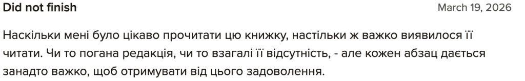 Однак у цьому тексті розгляньмо відгуки, де люди пишуть, що ж їм не сподобалося.